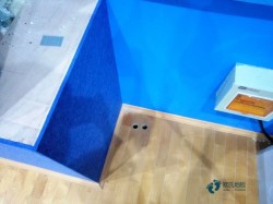 十一、铺放防潮膜:将体育木地板专用防潮膜按面板铺设方向进行铺展,接缝应避免重叠,接缝应用压敏胶带粘连。